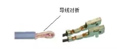 5 對于信號交互類的導線,使用規(guī)格更小的導線。比如使用0.35的導線替代0.5的。目前小線徑的導線是一個趨勢,比如目前比較火熱的0.13規(guī)格的導線。這里順帶提一句,目前0.13線徑的導線的技術難點在于抗拉強度及壓接強度上。導線越是細,其抗拉強度越是低,細小的導線直徑容易被拉斷。目前,0.13平方毫米導線的壓接工藝主要是DOUBLEX壓接,即此壓接工藝是將0.13平方毫米導線的剝線留長一點,而后將其對折并進行壓接。但是這種方式比較費力,如下圖: