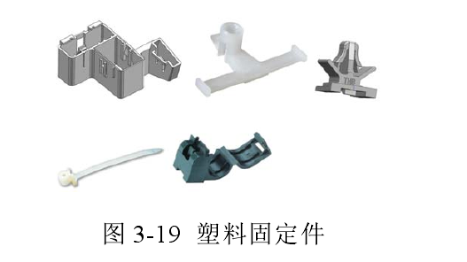 扎帶、卡扣、殼體、支架、護(hù)板等都屬于塑料固定件,如下圖3-19所示。其作用就是將線束或者線束上的零部件牢固的定位,防止線束或者線束上的部件與其他部件磨擦碰撞產(chǎn)生的噪音和損壞絕緣導(dǎo)致的不安全因素。