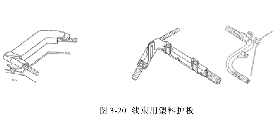 護(hù)板是以保護(hù)電線為目的,根據(jù)使用條件區(qū)分使用。用電線保護(hù)方法中最結(jié)實的保護(hù)方法,把線束集合成與車體形狀相符的復(fù)雜形狀,但是沒有柔韌性。如下圖3-20所示。