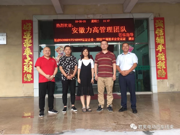 6月26日,安徽力高新能源領(lǐng)導(dǎo)蒞臨君奧工業(yè)園參觀指導(dǎo)工作,并洽談合作事宜。