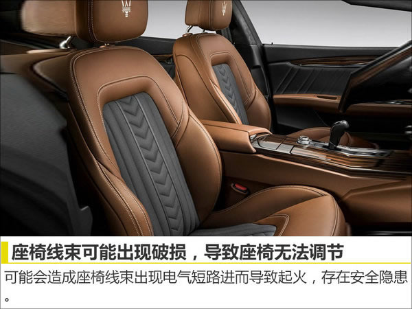 總裁、Ghibli、Levante分別是瑪莎拉蒂旗下的大型車、中大型車、中大型SUV。網(wǎng)上車市從國(guó)家質(zhì)檢總局缺陷產(chǎn)品管理中心了解到,本次召回范圍內(nèi)的部分瑪莎拉蒂車輛由于座椅線束出現(xiàn)電氣短路進(jìn)而導(dǎo)致起火,存在安全隱患,瑪莎拉蒂(中國(guó))汽車貿(mào)易有限公司將啟動(dòng)召回。