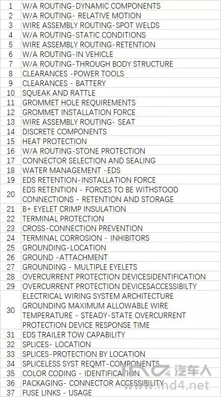表 1 傳統(tǒng)車EDS線束配電問題,設(shè)計(jì)考慮問題清單
