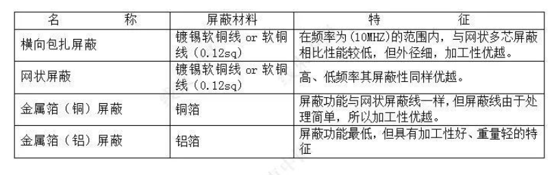 以下為屏蔽電線(xiàn)的種類(lèi)與特征: