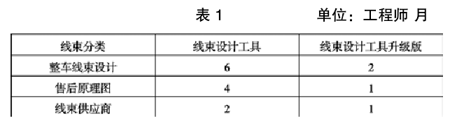 線束設(shè)計工具的使用可以大大縮短開發(fā)周期,提升線束原理及圖紙的準(zhǔn)確性。同時也減少了技術(shù)人員的投入。線束設(shè)計工具升級過程和人員消耗對比(表1)。