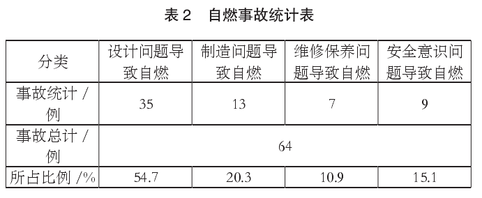 避免車輛自燃是一項復(fù)雜的系統(tǒng)工程,應(yīng)該從車輛的設(shè)計過程、制造過程、維修保養(yǎng)以及駕乘人員的安全意識四方面進行全面控制及提升。將64起自燃案例從以上四方面進行重新分類統(tǒng)計,如表2所示。