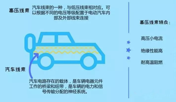 高壓線束是汽車線束的一種,與低壓線束相對(duì)應(yīng)。高壓汽車線束最大的共同特點(diǎn)是較高的電壓、較大的電流、絕緣性能和抗電磁干擾性能要求高。因此高壓線束要求絕緣層比較厚而且芯線相對(duì)較粗。高壓線束可以根據(jù)不同的電壓等級(jí)配置于電動(dòng)汽車內(nèi)部及外部線束連接,是新能源汽車高壓系統(tǒng)的神經(jīng)網(wǎng)絡(luò),非常重要。