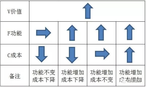 價(jià)值工程法(ValueEngineering, VE)又稱為價(jià)值分析(Value Analysis,VA)是一門新興的管理技術(shù),是降低成本提高經(jīng)濟(jì)效益的有效方法。指的都是通過集體智慧和有組織的活動(dòng)對(duì)產(chǎn)品或服務(wù)進(jìn)行功能分析,使目標(biāo)以最低的總成本(壽命周期成本),可靠地實(shí)現(xiàn)產(chǎn)品或服務(wù)的必要功能,從而提高產(chǎn)品或服務(wù)的價(jià)值。價(jià)值工程主要思想是通過對(duì)選定研究對(duì)象的功能及費(fèi)用分析,提高對(duì)象的價(jià)值。這里的價(jià)值,指的是反映費(fèi)用支出與獲得之間的比例,用數(shù)學(xué)比例式表達(dá)如下:價(jià)值=功能/成本。